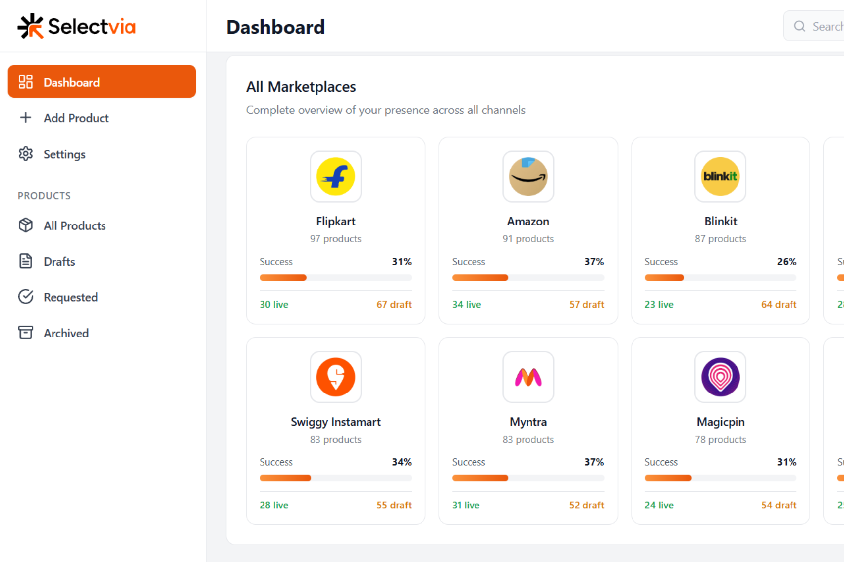 Purpose-built connectivity across traditional e-commerce giants, emerging quick commerce platforms, and specialty vertical marketplaces.